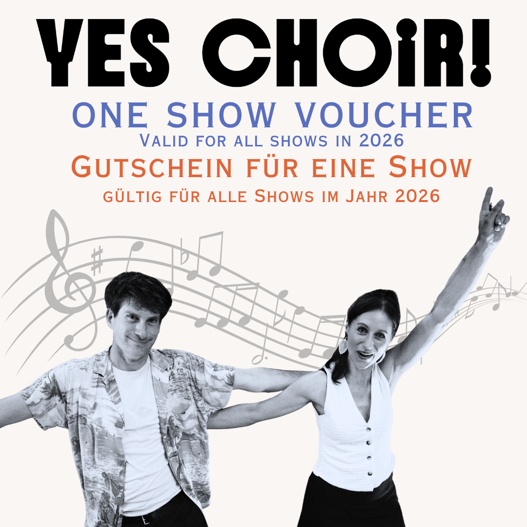 Der Gutschein gilt für alle YesChoir-Shows im Jahr 2026.